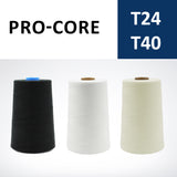 Pro-Core is a polyester core thread (sometimes referred to as corespun) that is made by wrapping staple polyester fibers around a continuous filament polyester core. The fiber surface provides the flexibility and smoothness for excellent sewing performance, while the continuous filament core increases strength and eliminates skipping problems during stitching. Perfect for topstitching and for applications where higher seam strength is important.